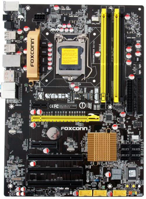 Foxconn P55A-S LGA 1156 Intel P55 ATX Intel Motherboard. Performance segment MB, target to meet DDR3 platform demands of enthusiasts and gamers. Support LGA1156 for Core i7 and Core i5 processors with P55 single chipset .the P55A allows you to build powerful PCs on a budget. Supporting 2 channel 4 DIMMs DDR3 memory up to 16GB at 1333MHz and including FoxOne Premium technology--Supports easy overclocking, voltage adjustment. Fan control and system monitoring. 100% solid capacitors--Improve overall system performance and stability, Gigabit LAN and 8-channel HD audio are also included on this Microsoft Vista certified and Windows 7 ready motherboard.