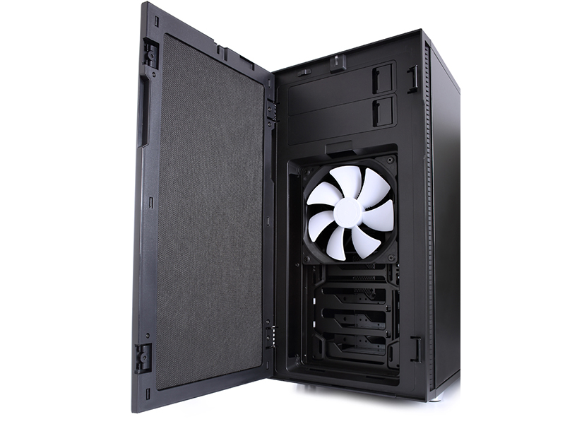 Newly configured front door with dual side mounting to better fit your work space and now features the same dense sound absorption material as found on the sides of the case for maximum silent computing.