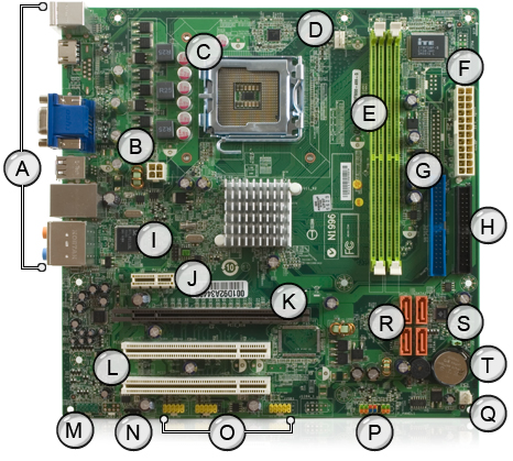 | G | Parallel ATA IDE connector | Q | System fan connector |