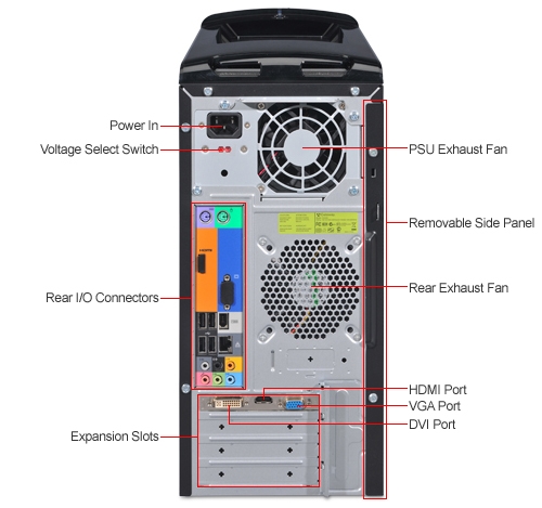 External Ports: (8) USB 2.0 ports (4 Front, 4 Rear), IEEE 1394a, VGA, (2) PS/2 Ports, HDMI™, (6) Audio Ports