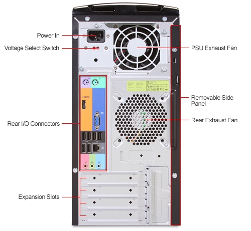 External Ports: (10) USB 2.0 ports (4 Front, 6 Rear), VGA, (2) PS/2 Ports, HDMI™, (3) Audio Ports