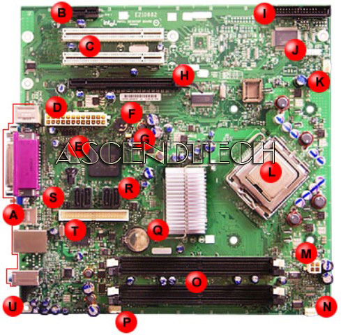 | S | Intrusion switch connector | T | Parallel ATA IDE connector |