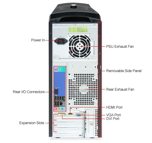External Ports: (10) USB 2.0 (4 Front, 6 Rear), HDMI™, (2) PS/2, DVI, (3) Audio, (1) High Definition Headphone Jack, (1) High Definition Microphone Jack