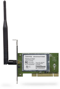 The Gateway® Wireless-G PCI Card can be installed into most desktops so you can put your computer just about anywhere in your home or office, without the costs and hassle of running network cables. Once you're connected, you stay in touch with access to your email, the Internet and instant messaging. It also lets you share files, printers and network storage with other computers on the network.
