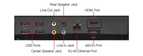 - 6 USB 2.0 ports (4 Rear, 2 Side) 1 x eSATA Port