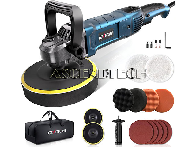 Geveelife PGJ 1600W 6/7in 1000-3500 RPM 7 Variable Speed Black Buffer Polisher.