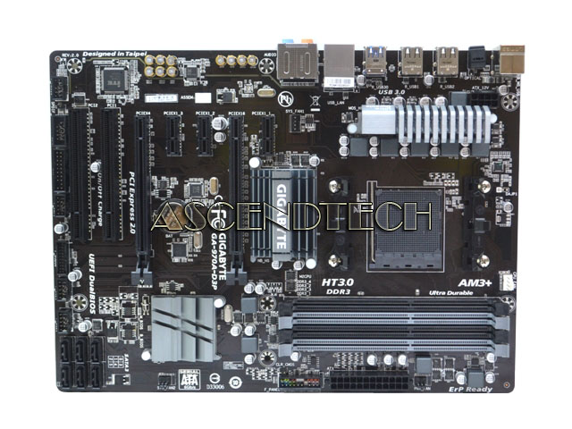 GIGABYTE GA-970A-D3P Rev.2.0 AMD 970 Socket AM3+ DDR3 ATX Motherboard. The GIGABYTE AMD 900 series motherboard is designed to offer a stable, high-speed platform for delivering amazingly fast data transfer via the GIGABYTE Ultra Durble™ technologies. Featuring the USB3.0 controller, AMD 900 series motherboards allow users to take advantage of super fast USB transfer rates of up to 5Gbps, delivering 10x faster data transfer compared to USB 2.0. Utilizing the industry's first Serial ATA Revision 3.0 solution via AMD SB950 chipset, GIGABYTE AMD 900 series motherboards provide native 6 ports of next generation high speed data storage devices support with data transfer speeds of up to 6 Gbps. The AMD 900 series motherboards introduce a unique hardware design with lower resistance fuses for ensuring lower voltage drops and providing more stable and plentiful power delivery.