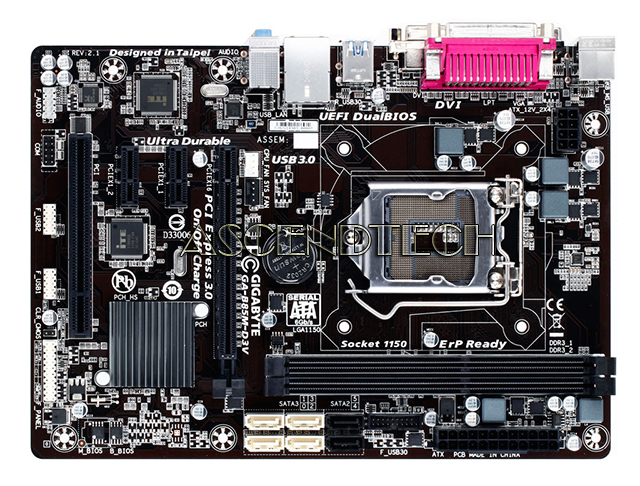 GIGABYTE GA-B85M-D3V Rev.2.1 Intel B85 Socket LGA1150 DDR3 Micro ATX Motherboard. GIGABYTE 8 Series motherboards support the latest 4th Generation Intel® Core™ processors, bringing together a unique blend of features and technologies that offer the absolute ultimate platform for your next PC build. From high current capable digital power delivery, performance-enhancing caching technologies, exclusive high-end audio features, advanced networking and device charging, gold plated hardware connectors and of course, killer good looks, GIGABYTE 8 series motherboards are in a class of their own.