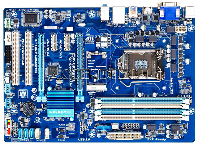 Gigabyte GA-H77-DS3H rev.1.1 Intel Chipset H77 Express Socket LGA1155 DDR3 ATX Motherboard. GIGABYTE 7 series motherboards take advantage of the latest connectivity and expansion bus technologies available on the Intel platform. The 3rd generation Intel Core processor platform debuts the new PCI Express gen. 3.0 expansion bus, allowing users to take advantage of the next generation, high-bandwidth discrete graphics card solutions.