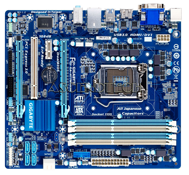 Gigabyte GA-H77M-D3H rev.1.2 Intel Chipset H77 Express Socket LGA1155 DDR3 Micro ATX Motherboard. GIGABYTE 7 series motherboards take advantage of the latest connectivity and expansion bus technologies available on the Intel platform. The 3rd generation Intel Core processor platform debuts the new PCI Express gen. 3.0 expansion bus, allowing users to take advantage of the next generation, high-bandwidth discrete graphics card solutions.