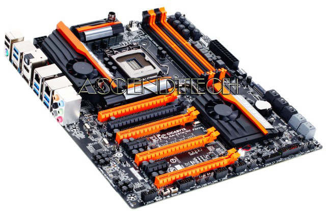 GIGABYTE GA-Z87X-OC Force LGA 1150 Intel Z87 SATA 6Gb/s USB 3.0 ATX Intel Motherboard with UEFI BIOS. The GIGABYTE GA-Z87X-OC Force mobo is based on the latest Intel Z87 chipset. It's a great system foundation to take full advantage of the "Haswell" power and features in an LGA 1150 package. Aimed at gaming enthusiasts and extreme overclockers, this mobo comes equipped with a number of new and improved features for maximized performance and the most enjoyable OC experience, including industry-leading durable components, a full set of small gears for optimization and customization, and a user-friendly setup interface for easy tuning. And with supporting four-way SLI and Crossfire graphics configurations, and an incredible 16 digital phase VRM for the CPU and memory, the GIGABYTE Z87X-OC Force is truly peerless and utterly ruthless.