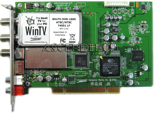 Hauppauge WinTV-HVR-1600 74551 LF HP 5188-7111 ATSC NTSC TV tuner card. The WinTV-HVR-1600 brings over-the-air high definition ATSC digital TV and analog cable TV to your PC. Watch and record TV in a window or full screen using high quality MPEG-2. It uses a hardware MPEG-2 encoder, so you don't slow down your PC while recording. With MPEG data rates from 2 to 8Mbits/sec, you decide how much hard disk space your videos will consume (the lower the data rates, the less disk space your videos will consume, but with lower video quality).