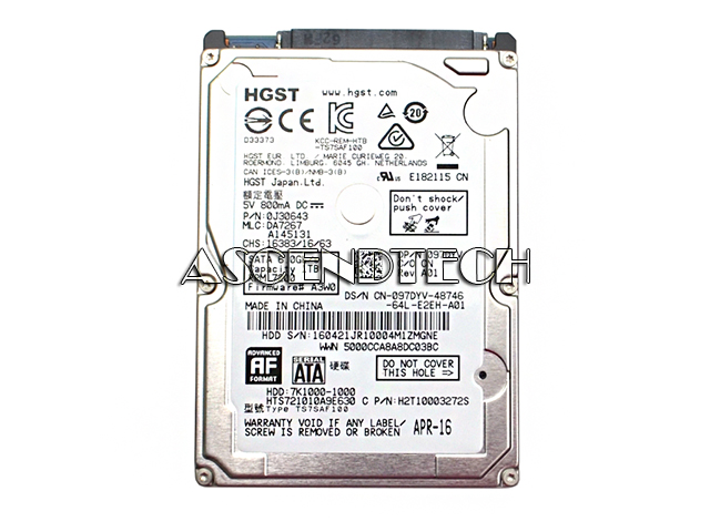 Dell HGST HTS721010A9E630 Travelstar 7K1000 1TB 2.5" 7200RPM 32MB Cache SATA 6Gb/s Laptop HDD Hard Disk Drive 0J30643 97DYV 097DYV CN-097DYV.