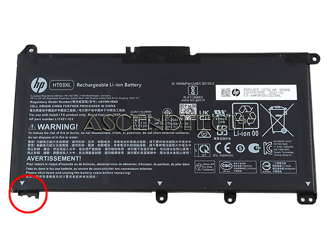 HP 14-CE 14-CF 14-CK 14-CM 14-CS 14-CW 14-DF 14-DK 14-DQ 14-FQ 15-DA 15-DB 15-DW 15-DY 15-EF 15-GW 17-BY 17-CA Series HSTNN-IB8O 11.4V 41.04Wh 3420mAh 3-Cell HT03XL 3ICP6/59/74 Li-Ion Rechargeable Laptop Battery L11421-1C2.