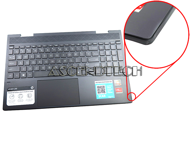 HP ENVY X360 Convertible 15-EE 15M-EE 15Z-EE Series Laptop Nightfall Black Fingerprint Reader Top Cover US English Backlight Keyboard Palmrest Touchpad Assembly L93119-001.