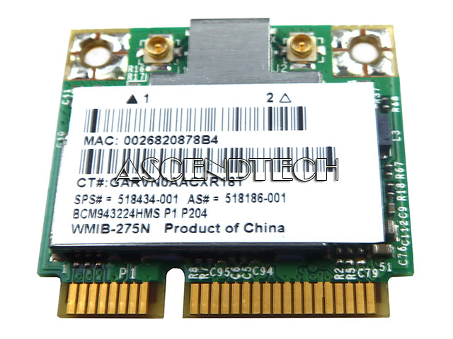 HP Compaq 2740P 4520S Mini 5102 Series Laptop Broadcom BCM943224HMS P204 WiFi 802.11 a/b/g/n Half-Mini PCI-Express Wireless Card 518434-001.