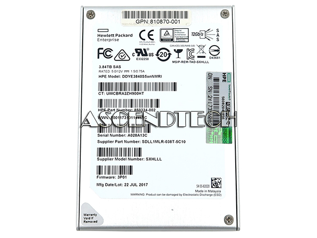 HP Enterprise DDYE3840S5xnNMRI 3.84TB 2.5" SAS 12Gb/s SSD Solid State Drive 850334-002.