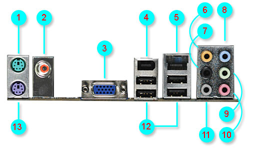 13 - PS/2 keyboard port (purple). This port is for a PS/2 keyboard.