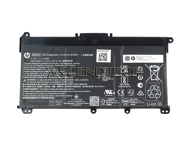HP 17-CN 17T-CN 17-CP 17Z-CP 17S-CU Pavilion 15-EG 15T-EG 15-EH 15Z-EH Series HSTNN-OB2A 11.34V 41.04Wh 3440mAh 3-Cell Rechargeable HW03XL 3ICP6/59/74 Li-Polymer Laptop Battery L96887-AC1.