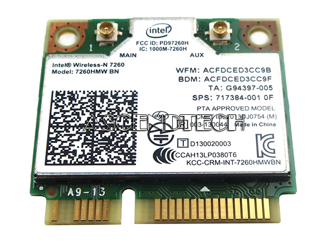 Intel 7260HMW BN Wireless-N 7260 802.11BGN Bluetooth 4.0 Half-Mini PCI-Express WiFi Card 717384-001.