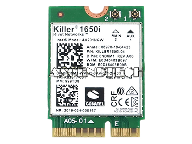 Intel WiFi 6 AX201 AX201NGW Killer 1650i 2.4Gbps M.2 2230 CNVio2 WiFi 6 802.11ax Bluetooth 5.2 Wireless Card KILLER1650I.04.