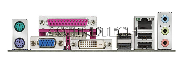 Input/Output Ports: 4x USB 2.0, 1x DVI-D, 1x VGA, 2x PS/2, 1x RJ-45, 1x Dual-Channel PATA, 1x Audio Line-In, 1x Audio Line-Out, 1x Microphone