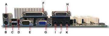 Connectors: PS/2 Mouse, PS/2 Keyboard, Printer Port, 2 USB Ports, 1 COMM Ports,