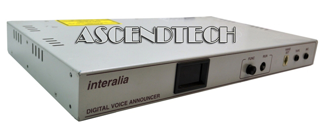 Genuine Original Interalia Digital Voice Announcer MMU2-64RAB. Interalia's Digital Voice Announcer is a microprocessor based audio recording and announcement system. A recorded message plays to a telephone line when the announcer is called. The audio recordings are stored in a solid state medium. The SMU, DMU, MMU2-4 and MMU2-6 are one, two, four and six line announcers respectively. They can be ordered with the following options: recording time from 32 seconds to 17 minutes; remote access; AC or DC power supply; battery backup; low impedance audio output. To determine the options installed in a particular unit, locate the model number code on the rear of the unit and compare it to the model number description chart in Appendix C. The amount of memory installed in an announcer determines the recording time. The total recording time is displayed on power up.