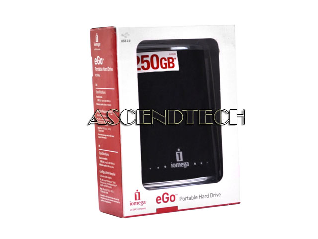 Iomega eGo USB 2.0 Portable External Hard Drive 250GB. This 250GB, USB 2.0 Portable Hard Drive is an extremely durable drive and is ideal for people who want or need a storage or backup drive they can take with them anywhere they go. With 250GB of capacity, it holds up to 1,000,000 photos*, over 4,625 hours of music* and 375 hours of video**.