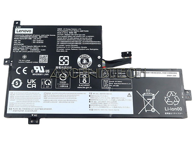 Lenovo Chromebook 100e Gen2 82UY 82V0 Gen3 82Q3 500e Gen3 82JB 82JC Series L20L3PG2 11.4V 3590mAh 40.9Wh 3-Cell 3ICP5/55/90 Li-ion Rechargeable Laptop Battery 5B11B36309 8S5B11B36309.