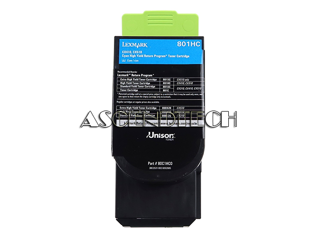 Lexmark CX410e CX410de CX410dte CX510de CX510dhe CX510dthe Series 3000 Pages Laser Printer Return Program High Yield Cyan Toner Cartridge 80C1HC0.