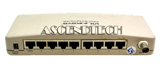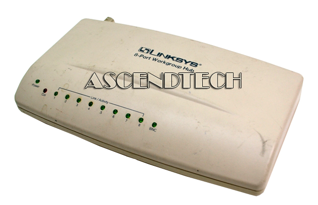 Genuine Original Linksys 8-Port Ethernet Workgroup Hub EWHUB. This Linksys EWHUB Ethernet 8-Port Workgroup Hub is just the ticket for transforming your computers into a high performance workgroup. Share files, printers, multimedia and more at speeds up to 10 Mbps. Eight 10Base-T ports and one thin coax port make the installation easy!