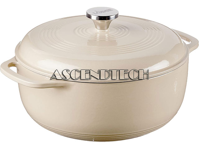 Lodge Sandalwood Color 6 Quart Dual Handles Enameled Cast Iron Dutch Oven with Lid.