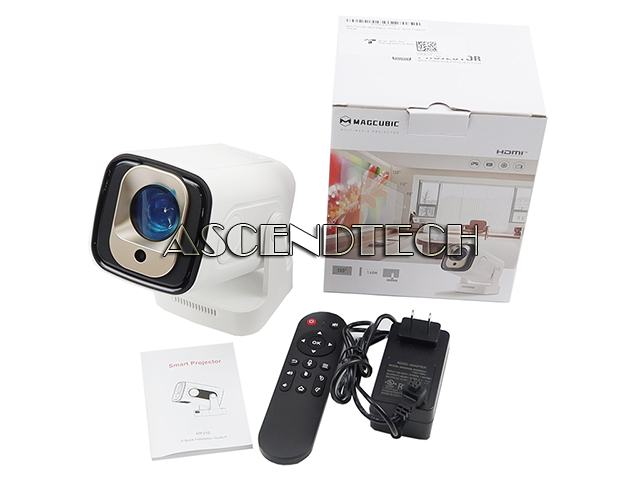 Features: Auto Focus, Voice Control, Air Mouse Remote, Built-In Dust Filter, Ceiling and tripod Mount, Tabletop Use. Projector, Remote Control, Charger, User Manual