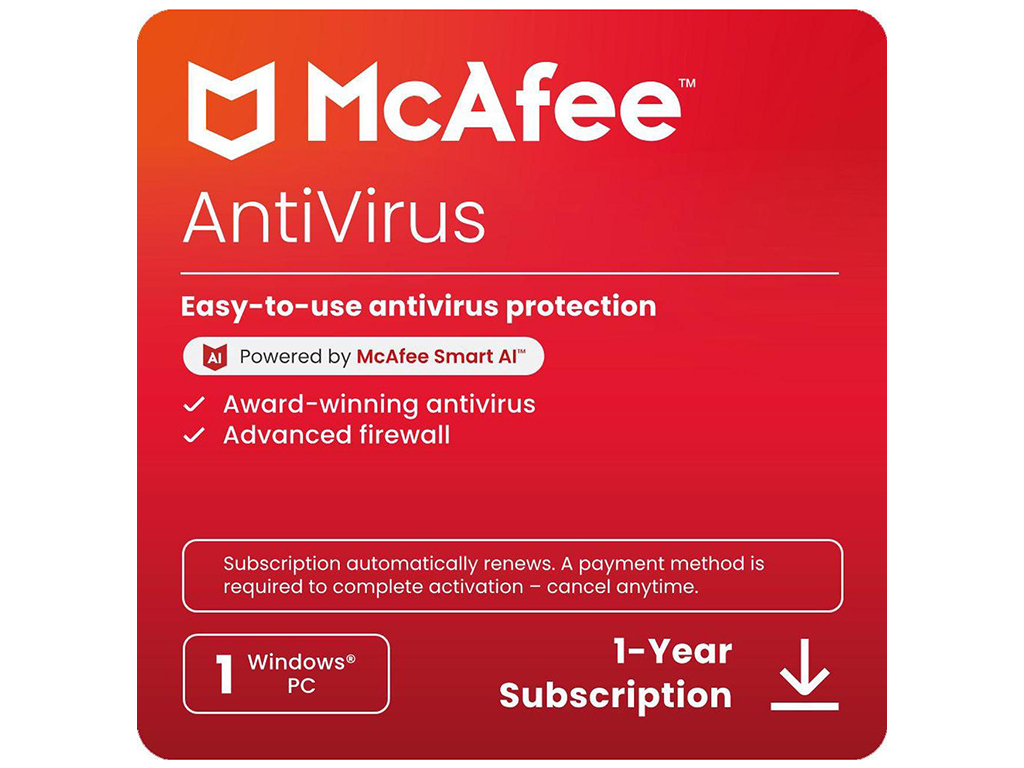 Details| Name | McAfee AntiVirus (Windows) - 1 Device - 1-Year Subscription with Auto-Renewal (Digital Download) |