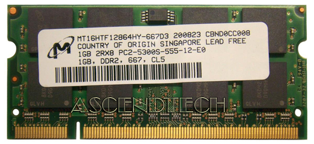 Micron 1GB 200-Pin 2Rx16 PC-5300S DDR2-667MHz SDRAM Non-ECC UnBuffered SODIMM Memory Module MT16HTF12864HY-667D3.
