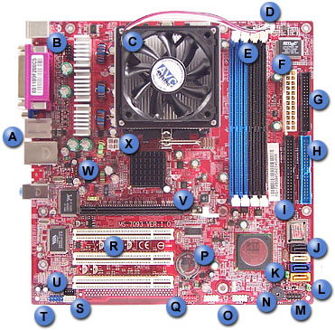 | F | ATX power connector | R | PCI slots |