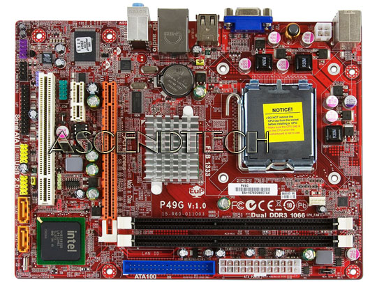PCChips P49G (V1.0) LGA775 Intel Desktop Motherboard. P49G features Intel G41 and ICH7 chipsets. It has a really small form factor of 255x170 mm with high transfer rate of FSB1333, dual channel DDR3 1066 with 4GB memory support. Also is compatible with the latest Intel 45nm, dual-core processors. P49G is a sure product to access the greatest enjoyment.