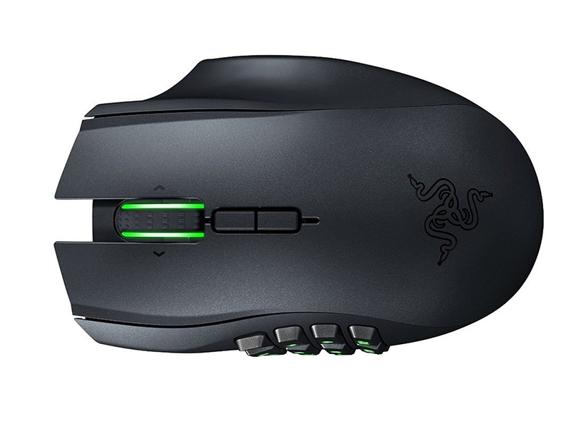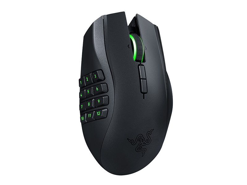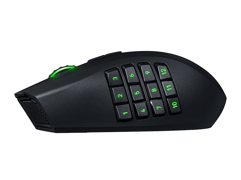 Razer Naga Chroma Multi-Color MMO Gaming Mouse. The Razer Naga Chroma's original 12 button thumb grid is outfitted with mechanical switches to give you tactile and audible feedback, so you can be assured of every actuation. The thumb grid's buttons have a concave shape to allow each button to stand out individually. This allows for blind-find so you stay focused on the game, letting your instincts and reflexes lead you to victory.