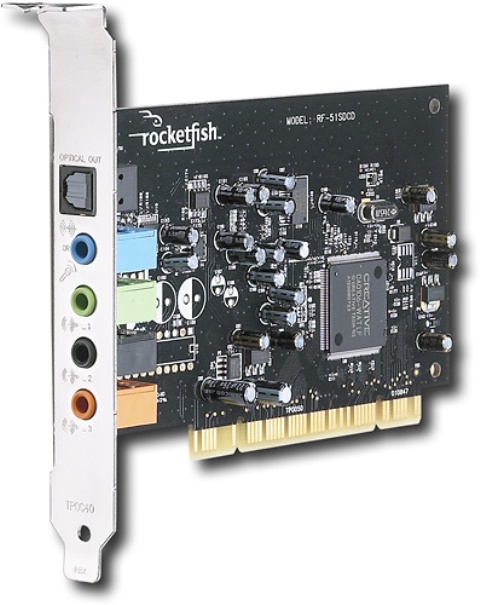 Rocketfish RF-51SDCD 5.1-Channel PCI Sound Card. This PCI sound card lets you give your computer's sound system a boost to help bring your audio to life.