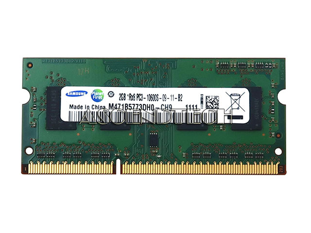 Samsung 2GB 1Rx8 DDR3 SO-DIMM PC3-10600 1333MHz 204-Pin Non-ECC CL9 1.5V Laptop Memory Module M471B5773DH0-CH9.