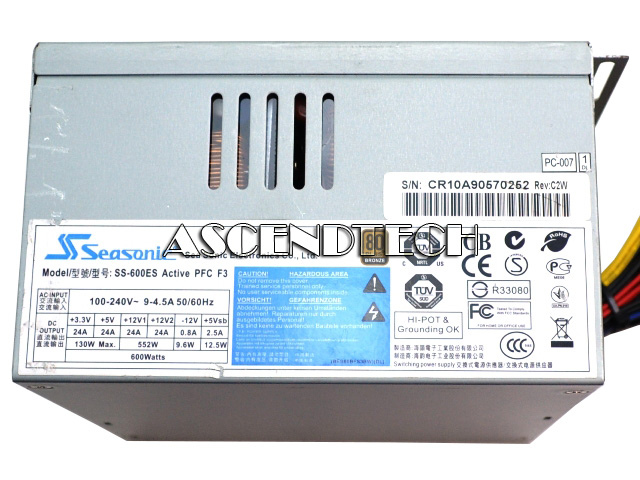 Seasonic SS-600ES 600W Active PFC F3 80-Plus Bronze ATX PSU Power Supply Unit PS-SS600-ES. This Seasonic industrial power supply is version 12V v.2.3 compliant and 80 PLUS Bronze rated. Its double forward converter circuit, super low noise fan control and great protection features make it a dependable choice for a wide range of systems. This unit is PCIe and SATA cable ready and with its full AC input range. It is a stable, efficient and reliable power supply, ready to be used in any ATX form factor build.