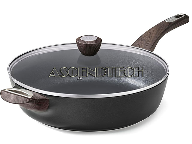 Features: HEALTHY SKILLET - Switzerland ILAG nonstick surface. Free of PFOA, PFOS, lead, cadmium and other toxic materials that can leach into food, safe & healthy. SUPER NONSTICK - The surface of the saute pan with lid is smooth and super nonstick, pancakes just slide right off the pan effortless. Only less oil is needed for cooking, for a healthy, low-fat diet. INDUCTION COMPATIBLE - The nonstick deep frying pan is made of heavy-duty cast aluminum that won't warp. Its induction base is suitable for all stovetops, including induction cooktop, and it heats fast and evenly. HEAT RESISTANT HANDLE & TEMPERED GLASS LID - The bakelite handle of the ceramic non toxic frying pan with lid features woodgrain design, and it is comfortable to grip and stays cool while cooking. The explosion-proof glass lid prevents splashing and ensures maximum visibility. EASY TO CLEAN - The nonstick surface and no rivets design make the non toxic frying pan with lid easy to clean in seconds with a towel, soap and warm water. Recommend hand wash to extend the non stick surface life. MULTIFUNCTIONAL PAN - This deep skillet offers a variety of cooking options such as sautéing, stir-frying, searing, boiling, simmering, blanching, braising, deep-frying, stewing. One pan can be used in multiple ways.