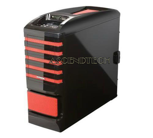 Sentey Extreme Division GS-6500R Burton Black/Red ATX Full Tower Case without power supply. Designed with full consideration of style, ruggedization, performance and ease of assembly, the Sentey Burton Extreme Division tower case is a great chassis to accommodate your power house. The Sentey Burton case boasts 1mm SECC construction combined with a black-red color tone and high glossy front panel granting you exceptional overall quality and outstanding eye attractiveness which will make your friends jealous. Six red LED fans generate colossal air flow that keeps your components and whole system cool. The side panel allows easy removal just by pressing and pulling. The tool-less design for ODD, HDD and expansion slots makes the components installation or upgrade a cinch. A good list of features, such as bottom mounted PSU with dust filter, four fan controllers on top panel, hidden cable routing and retention hole for liquid cooling system upgrade, grant everything you need to build your power dream system. As an added bonus, a card reader located at the top I/O panel provides thoughtful access to your memory media, eliminating the hassle of connecting an extra device.