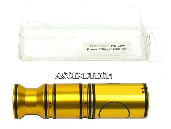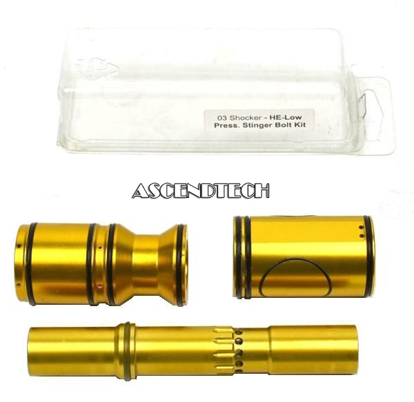 Shocker Evolve V2 Low Pressure Firing Assembly Bolt Kit for a Paintball gun. The Shocker's Bolt kit assembly consists of the; Bolt, Bolt Sleeve, and Fire Chamber. The Evolve kits allows for operating pressures down to around 180 psi. This bolt kit only works in sealed body shockers. These include the Nasty, Pre 06 Dynasty, Strange, Octane, Toxic, and TonTon Shockers.