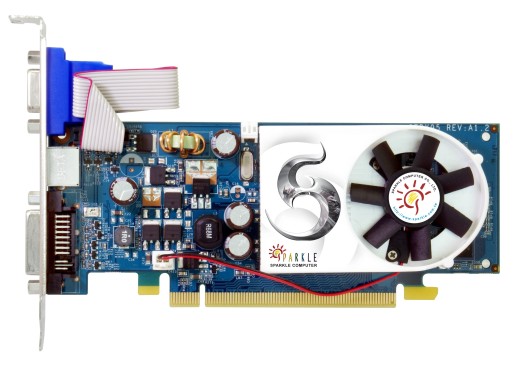 Sparkle GeForce 9500 GT 512MB DDR2 DVI, TV out / S-Video, VGA, PCI Express 2.0 x16 Video Card. Sparkle GeForce 9500 GT Features, NVIDIA unified architecture Full Microsoft DirectX 10 support NVIDIA SLI technology PCI Express 2.0 support GigaThread technology NVIDIA Quantum Effects technology NVIDIA ForceWare Unified Driver Architecture (UDA) OpenGL 2.1 optimizations and DVI support NVIDIA PureVideo HD technology Discrete, programmable video processor Hardware decode acceleration HDCP capable Dynamic contract enhancement Advanced spatial-temporal de-interlacing High-quality scaling Bad edit correction Noise reduction Dual stream decode acceleration Edge enhancement Integrated SD and HD TV output
