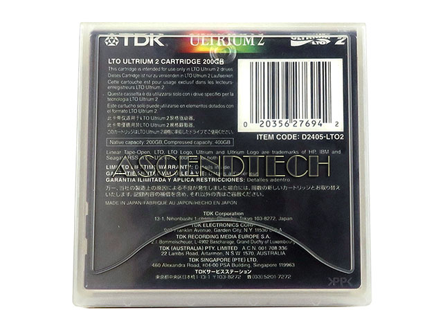 TDK LTO-2 Ultrium 200GB Native / 400GB Compressed Data Cartridge Backup Tape D2405-LTO2.