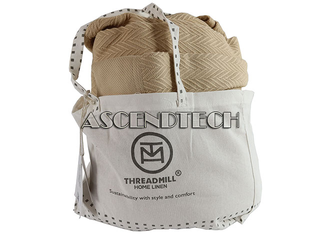 Threadmill Home Linen King Size 106x92in Luxury Herringbone Pattern Cotton Blanket Beige with Carrying Bag THM-BLNKT-DRB16-Beige-K.