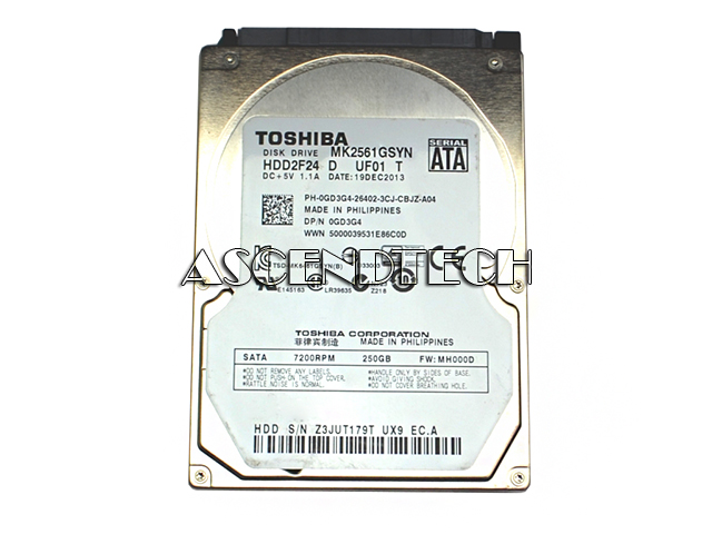 Dell Toshiba MK2561GSYN 250GB 2.5" 7200RPM 16MB Cache SATA 3Gb/s Laptop HDD Hard Disk Drive GD3G4 0GD3G4 PH-0GD3G4.