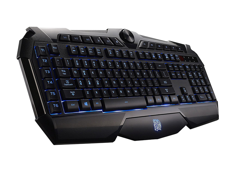 Tt eSports CHALLENGER Prime Backlit Gaming Keyboard. The CHALLENGER Prime membrane gaming keyboard packs a whole lot of features at a budget friendly price. The backlighting system features red, blue, and purple LEDs for static and pulse lighting; Brightness can further adjusted via the dial in the front center of the keyboard. As with the CHALLENGER series of keyboards, the CHALLENGER Prime also features onboard memory for setting the dedicate macro keys. In addition, there are multimedia keys, shortcut keys, repeat rate and poll rate adjustment keys.